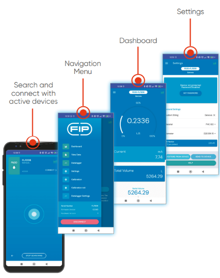 The New FLS F6.50 Flow Transmitters' series are able to communicate with the user via Bluetooth® connection through the Smart Connect FIP app.