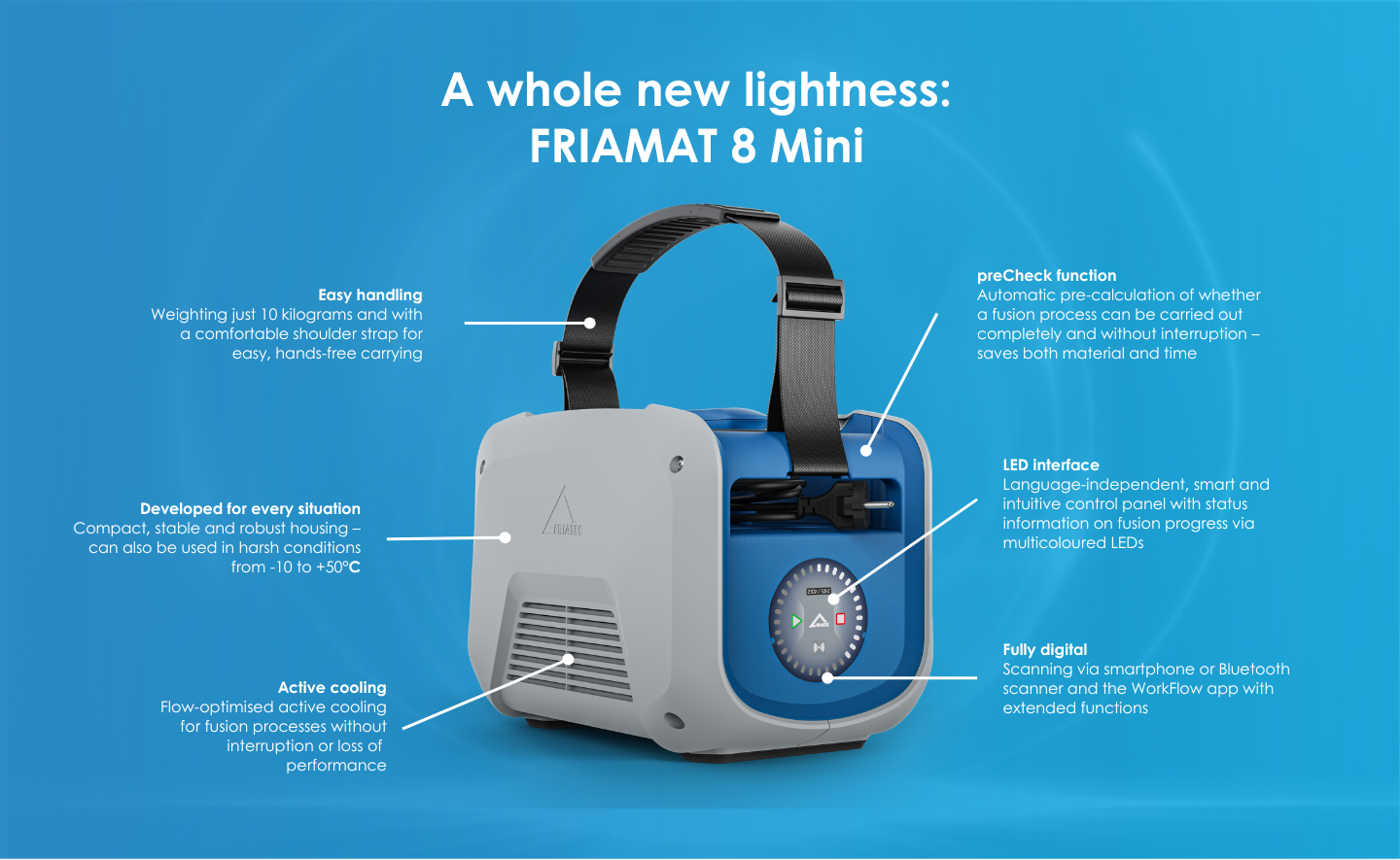 The FRIAMAT 8 Mini stands for reliable fusion processes, longlasting connections and an impressive service life